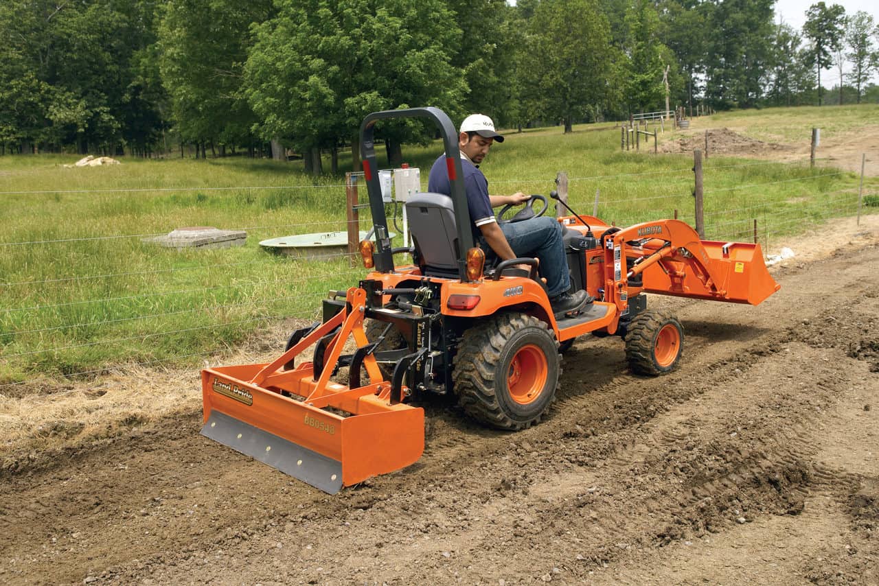 Productivity in a small package. The Land Pride BB05 Series Fixed Bar Box Scrapers are designed for Category 0, 1, and 1 limited 3-Point hitch for mounting to subcompact tractors. These box scrapers are ideal for ripping, leveling, finish grading, and backfilling applications at small feedlots, outdoor arenas, building sites, and maintenance operations for small landowners. The manually adjustable ripping shanks and the fore and aft cutting blades make these units especially effective and productive for small projects.