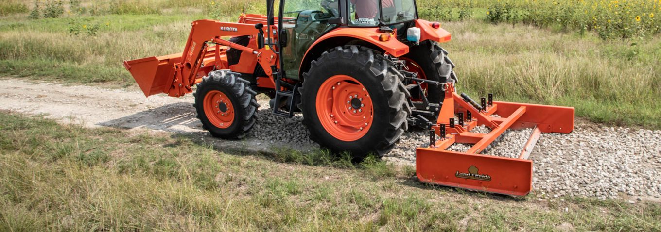 Land Pride’s, GS2584 & GS2596 Grading Scrapers are ideal for renovating gravel driveways and roads, leveling construction and turf sites, and cleaning barns and chicken coups. Grading Scrapers have uses in applications such as landscaping operations, farms, ranches, construction sites, hunting camps, logging sites, mining operations, large estates, small acreages, sod farms, and municipal and county rural road maintenance facilities. These Grading Scrapers are extra user-friendly and a low cost alternative for road grading applications.